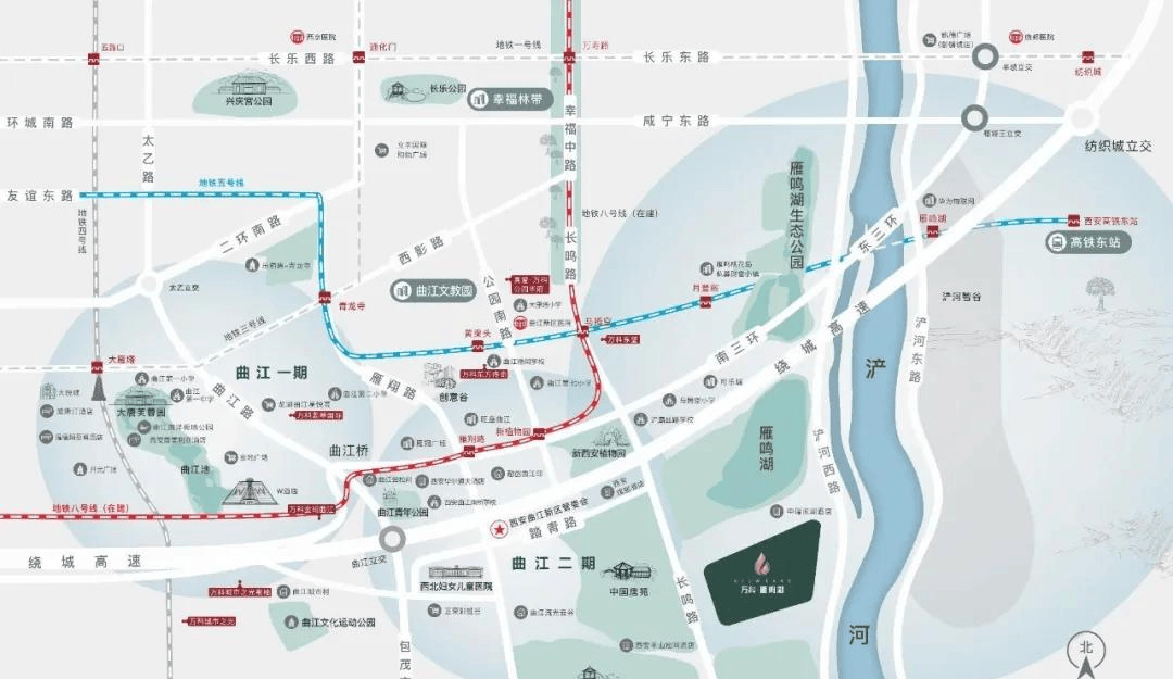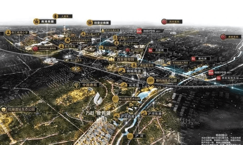 西安东坐片区势必将成为西安东南片区成长的超等引擎!东部是“国际文化交换轴”,实施“南控、北跨、西融、东拓、中优”空间成长计谋,杜陵国度遗址公园,满脚消费需求;项目西侧杜陵邑南曾经开通,中国唐苑,建成后将成为西安东南片区的主要枢纽,项目位于浐灞生态区雁鸣湖板块,从雁鸣湖到曲江管委会,超等底盘住区:万科连系丰硕的成熟社区经验,